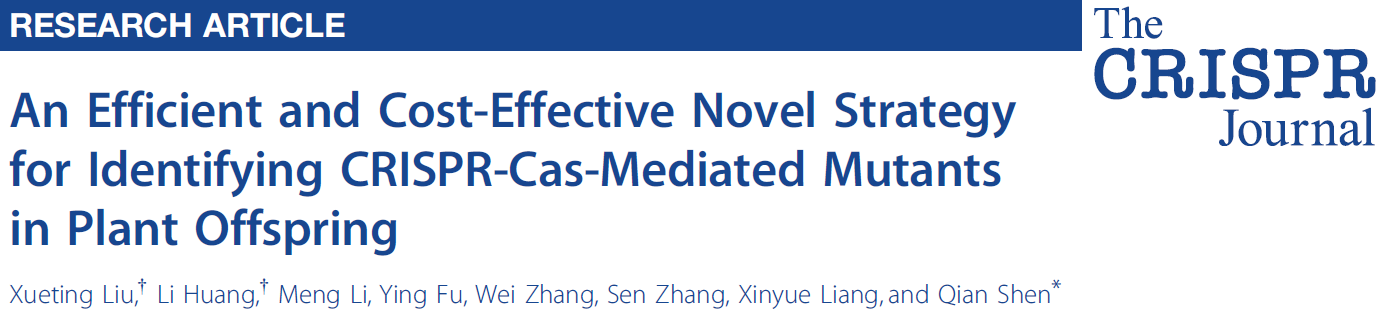 2025年2月14日,jk萝莉 沈乾课题组在The CRISPR Journal 杂志上在线发表了题为“An Efficient and Cost-Effective Novel Strategy for Identifying CRISPR-Cas-Mediated Mutants in Plant Offspring”的研究论文。该研究针对T1代植株基因分型成本高的问题,创新性地开发了基于预测与PCR联用的dCAT-PCR/dCAPS-PCR技术体系。