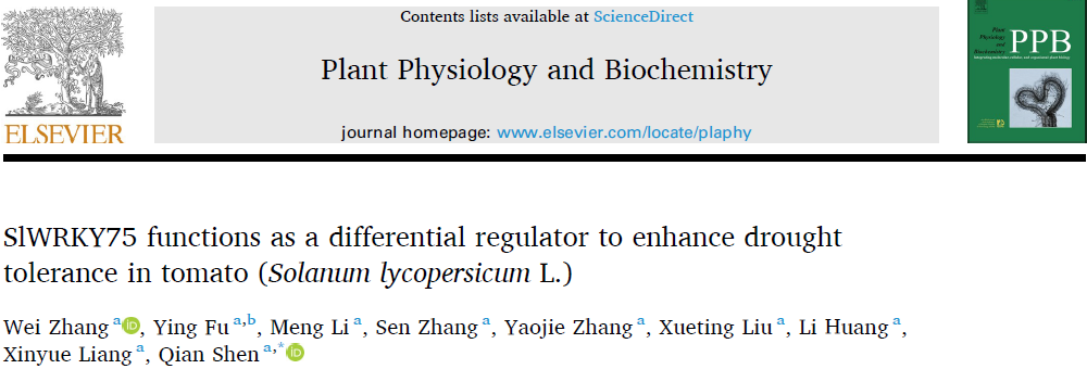 2025年6月26日,jk萝莉 沈乾课题组在植物学经典期刊Plant Physiology and Biochemistry上发表了题为 “SlWRKY75 functions as a differential regulator to enhance drought tolerance in tomato (Solanum lycopersicum L.)” 的研究论文,研究发现SlWRKY75通过差异调控地上部(正调控表皮毛发育)和地下部(负调控侧根生长),通过基因编辑该靶点基因可同步提升番茄抗旱性与采后保水性。