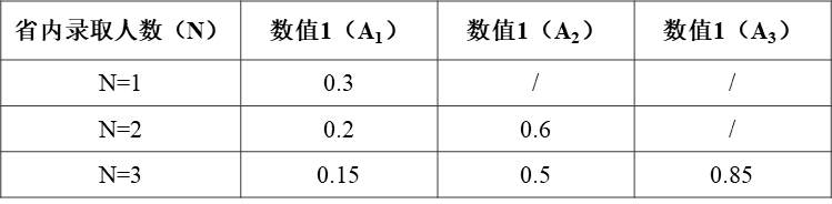 某省录取人数少于3人(含3人)时,按下表折算数值1