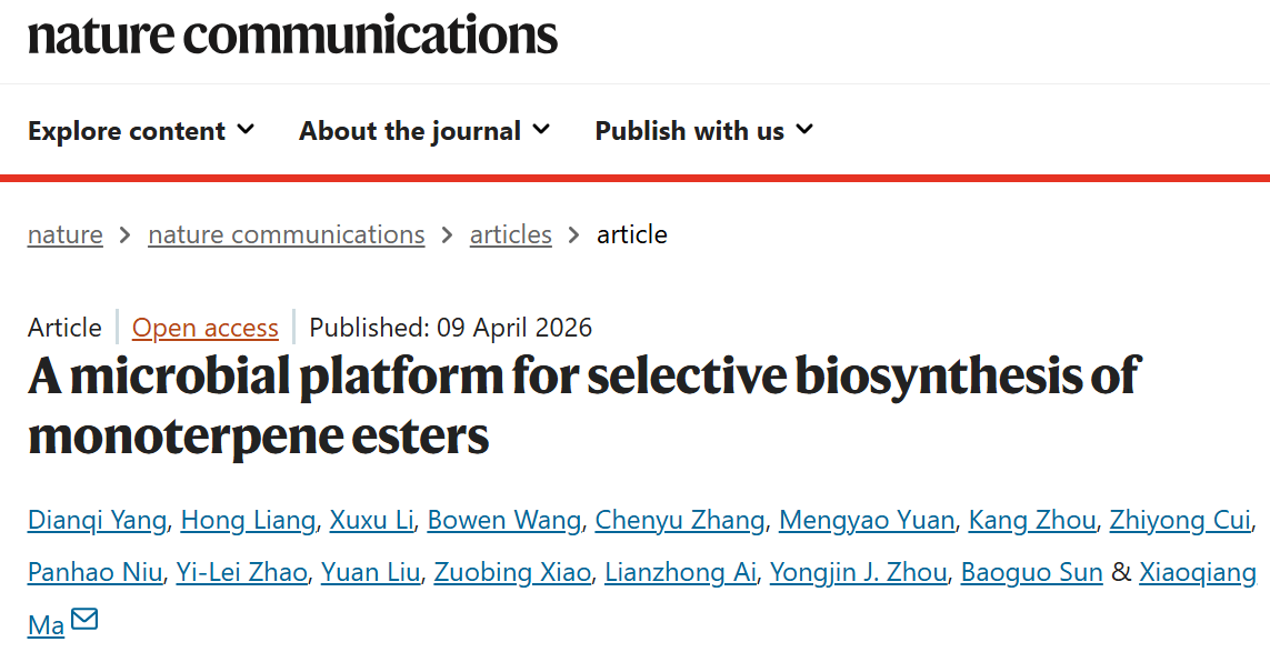 Nature Communications — 马晓强研究组开发微生物单萜酯生物合成平台